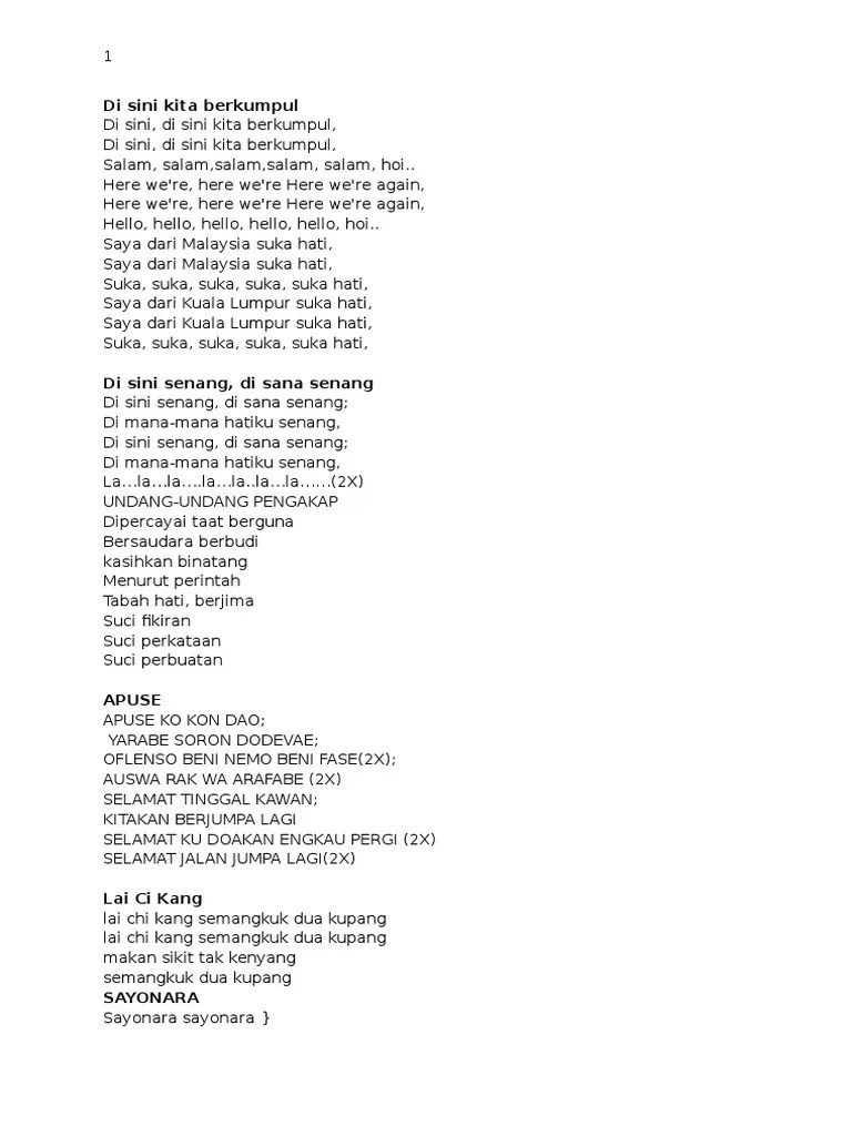 Download pdf 3 lirik lagu pengakap undang undang pengakap vnd5d3kywrlx. Kami pengakap malaysia harapan nusa dan bangsa … ٢٤ ذو القعدة ١٤٣٨ هـ. ٤ ربيع الآخر ١٤٣٣ هـ.